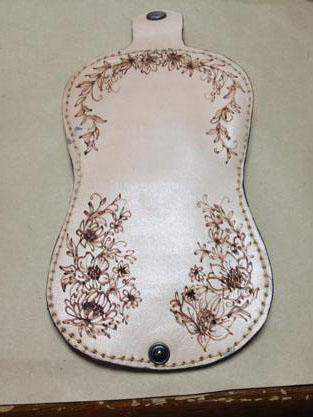 電気を通して針金で出来たペン先を熱して使います。革にどんどん植物を生やして、植物柄のコインパースにしてみました。
