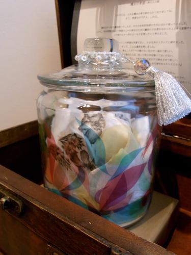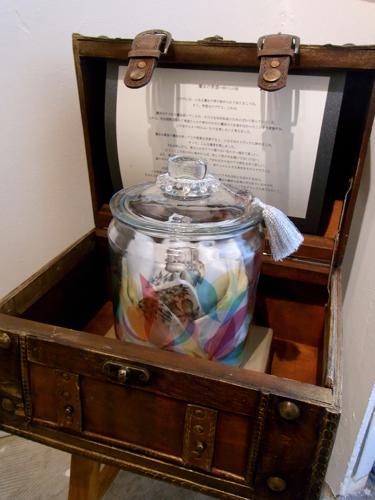 古びたトランクの中に、色鮮やかなガラスの壷。