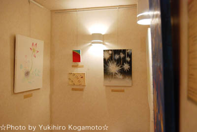 しかし、「ふたつでひとつ=二つの会場をめぐって意味が分かるもの、楽しめるもの」という所も忘れちゃいけない!という訳で、ちょっとしたしかけもつくりました。(写真の絵の下の方に写ってるやつ)