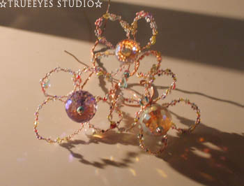 ※「あの花」とは・・私の個展などで発表している、針金やビーズ等でできた花のオブジェです。いい名前が思い付かず、いっつも「あの花」と読んでいるうちに、名前として定着してしまいました。。