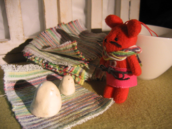 会場で使うスツールの上では、BANEのネズミ=バネズミと、謎の生物兄弟が打ち合わせをしています。。
