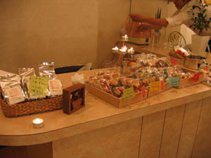 会場に入ると、カウンターで世にもおいしいコーヒーと、ほっぺた落ちそな甘いお菓子がお出迎え。