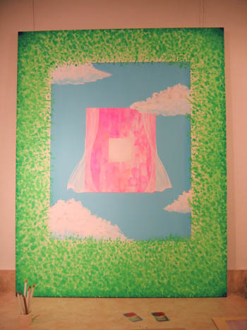 この50号のキャンバスをプレゼントしてくれた仲良しの先輩たちや、「春待ちカフェ」に集った人々のことなど、自分の大好きな人々や大好きな場所の事を考えながら描きました。「好き」という気持ちを存分に込めて描けたので、楽しかったです。
