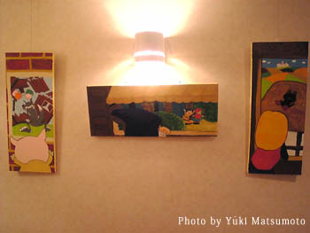 左から「三びきのこぶた」「ヘンゼルとグレーテル」「ながぐつをはいたねこ」。もうひとつ出展されていた、バイオリンを弾く人の絵もステキでした!