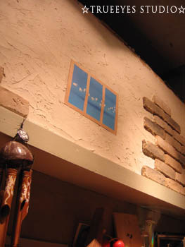 以前の作品をプリントアウトしたものに、クラフト紙で窓枠をつけています。