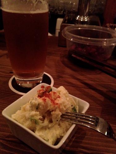 シャンディガフ、隣の席の常連さんから頂いた柴漬け、そして隠れた逸品・ポテサラ!!ずっと気になってたScarecrowのポテサラ、ついに食べれました!お酒によく合う別腹系おつまみポテサラ。おススメ!