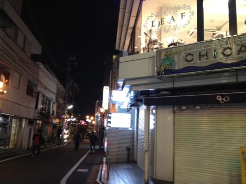 下北沢駅南口のマクドナルドから商店街を抜けて「餃子の王将」を左折。古着屋「シカゴ」の通りを直進して