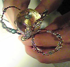 ※「あの花」とは・・私の個展などで発表している、針金やビーズ等でできた花のオブジェです。いい名前が思い付かず、いっつも「あの花」と読んでいるうちに、名前として定着してしまいました。。