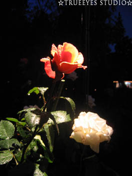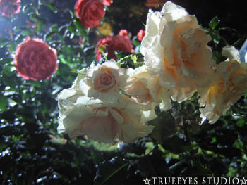 入り口近くの洋館の横のスペースでは、バラにスポットライトが当てられて、ステージのようでした。