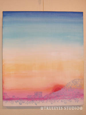 夕方の風景です。バスの窓から見えた空のグラデーションがとてもきれいで、それを再現しようと思って描きました。