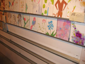 私のコーナーは、入って正面の壁のちょっと下の方、伏し目がちに歩くとすぐ見つかります(^^;)いつも新作はポストカードにはしないんですが、今回は新作の絵も特別限定品で出品しました!ジョウには出してないやつもちらほら・・。